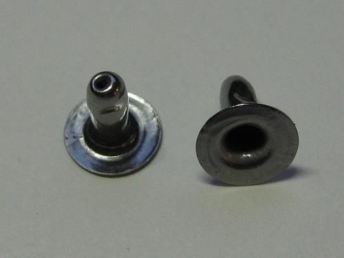 左:両面カシメ 右:片面カシメ 共につぶす前の形