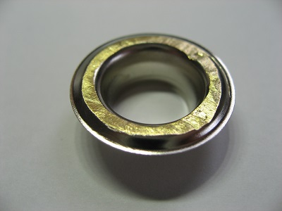 ハトメには材質がいろいろあります。さらに、メッキ加工されている物もあるので、一目で材質を見分けるのが難しいものもあります。